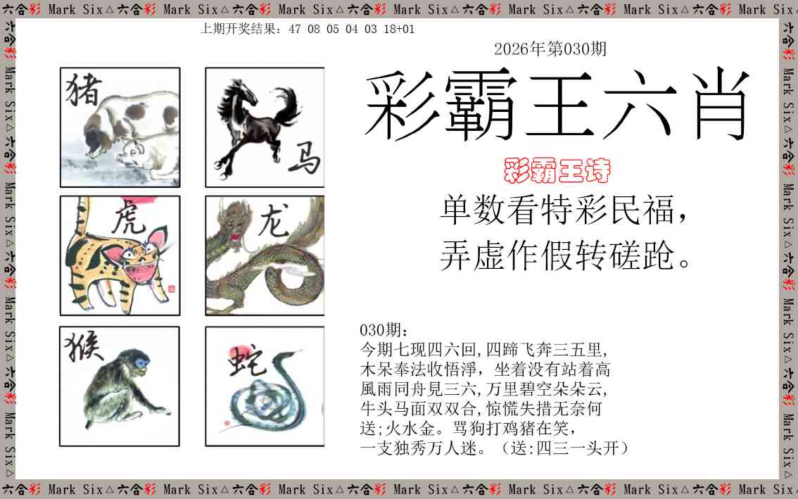 | 030期【三连肖/11.12倍】 【虎蛇马】【牛鸡羊】【鼠兔龙】 【蛇马牛】【鸡羊鼠】【兔龙虎】 开:00-00-00-00-00-00 特00 |