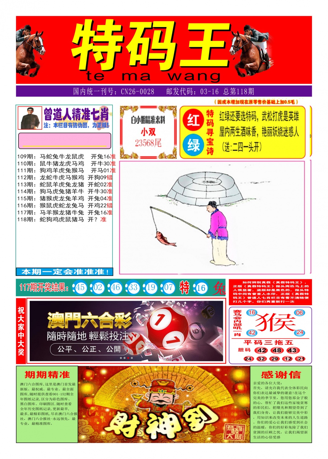 | 112期:⑧肖 | 虎鼠龙猴羊蛇猪兔 | 狗09错 |