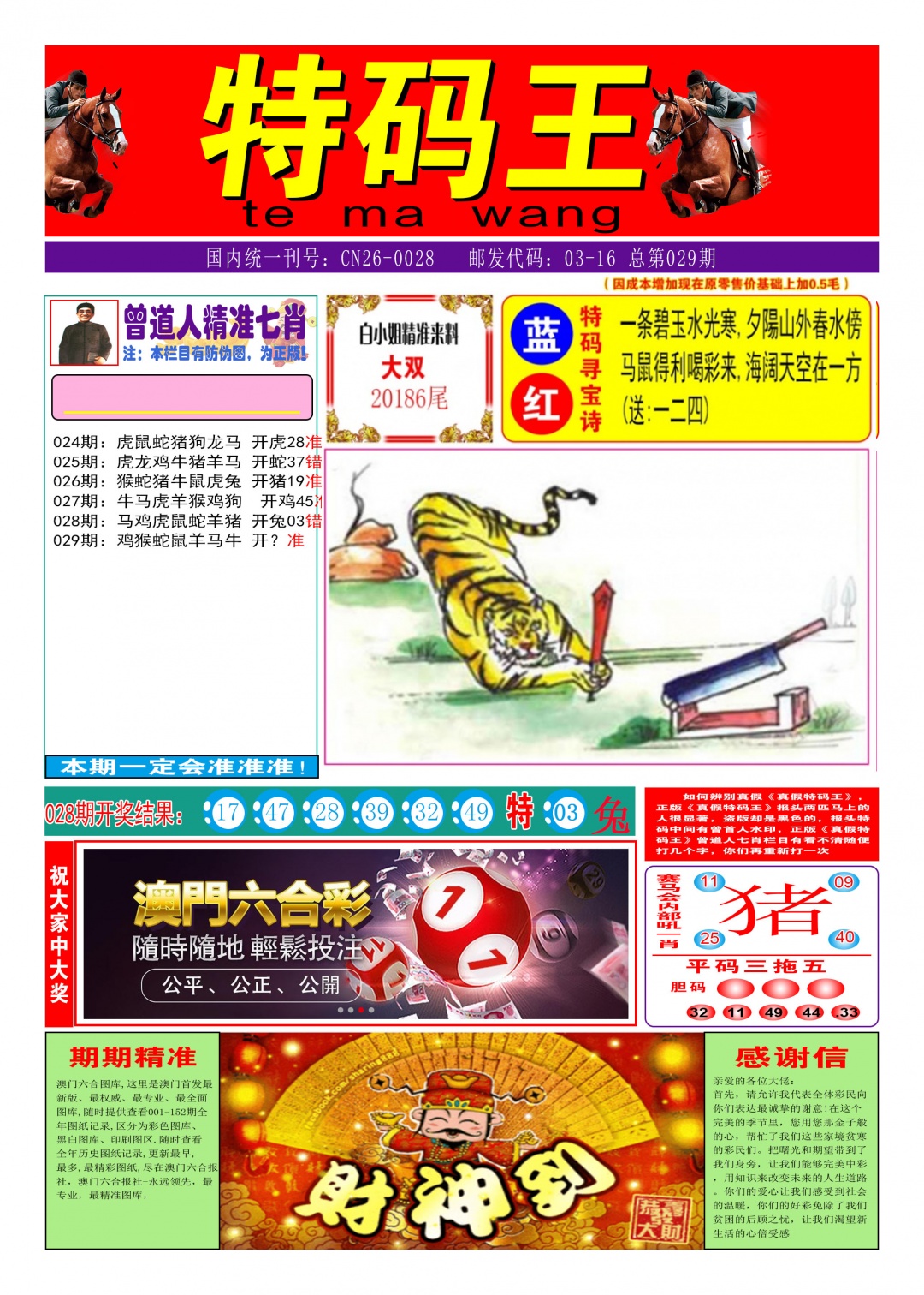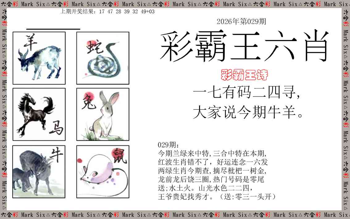 | 029期【三连肖/11.12倍】 【虎蛇马】【牛鸡羊】【鼠兔龙】 【蛇马牛】【鸡羊鼠】【兔龙虎】 开:00-00-00-00-00-00 特00 |