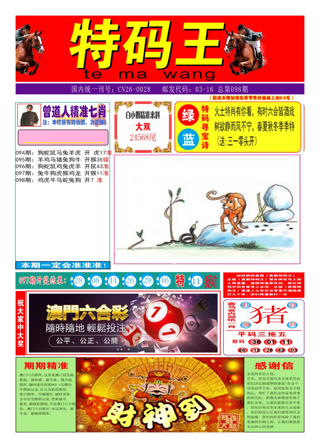 | 098期:大皇冠《三肖三码》已免费大公开 |
